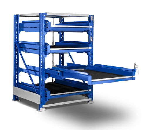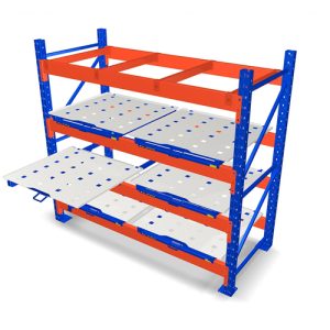 Drive-in pallet racks and drive-thru racks are rolled-formed. Product is stored several pallets deep, and handling equipment enters the industrial rack structure to slot or extract pallets.